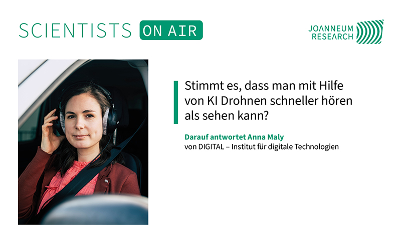 Akustische Umgebungen werden zunehmend komplexer – doch wie können technische Systeme relevante Geräusche zuverlässig erkennen? Am Institut DIGITAL der JOANNEUM RESEARCH erforscht die Forschungsgruppe Intelligente Akustische Lösungen, wie Audioanalyse mithilfe von KI, intelligenten Algorithmen und Sensorsystemen optimiert werden kann. Die Akustikforscherin Anna Maly geht dabei der Frage nach, ob sich Drohnen mithilfe von Künstlicher Intelligenz mitunter schneller hören als sehen lassen: