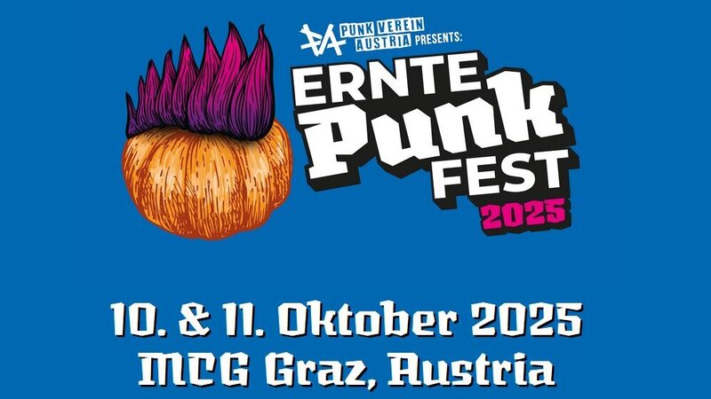 Das größte Punkrock-Festival der Steiermark geht in seine sechste Runde. Denn das ErntePUNK Fest heizt am kommenden Wochenende, also dem 10. und 11. Okotber in der Messe Graz wieder so richtig ein. Zwei Tage voller Energie, lauter Gitarren und gelebter Subkultur. Internationale Größen treffen auf lokale Bands, Newcomer und Szene-Veteranen – insgesamt 16 Acts bringen das Festivalgelände von 16:00 bis 02:00 Uhr zum Beben. Abseits der Bühne steht das Event für Gemeinschaft, Vielfalt und den Erhalt einer unabhängigen Punkkultur in der Steiermark. Alex Pfleger vom PUNK VEREIN AUSTRIA:
